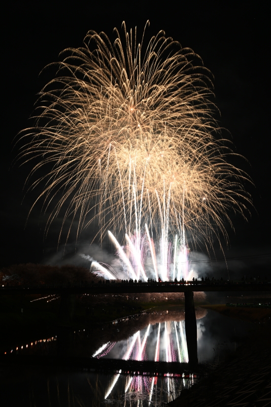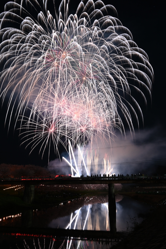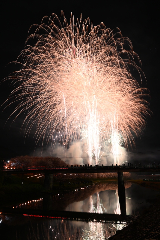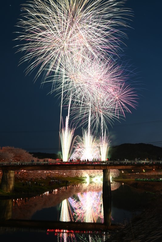 桜の名所でもある白竜湖で広島県内で最も早い花火大会が行われる。