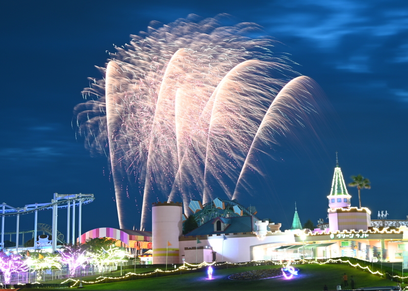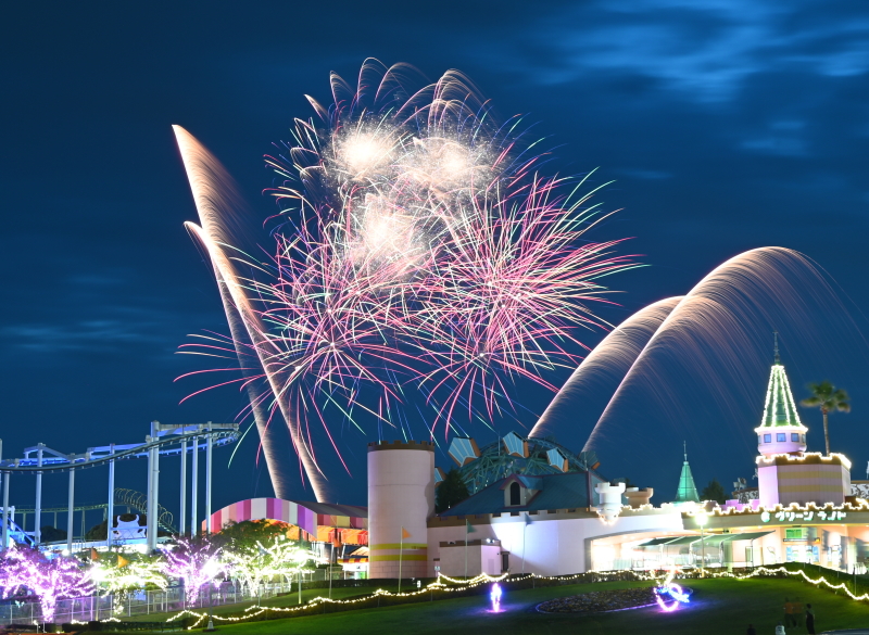 九州初の吊り下げ式コースターなど80種を超えるアトラクションがある。