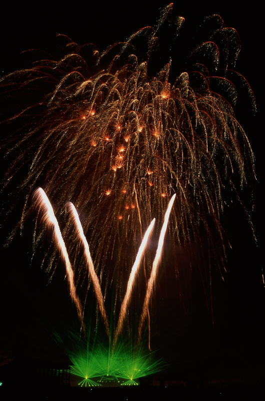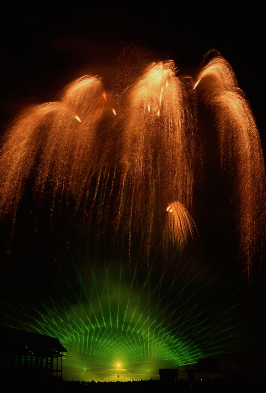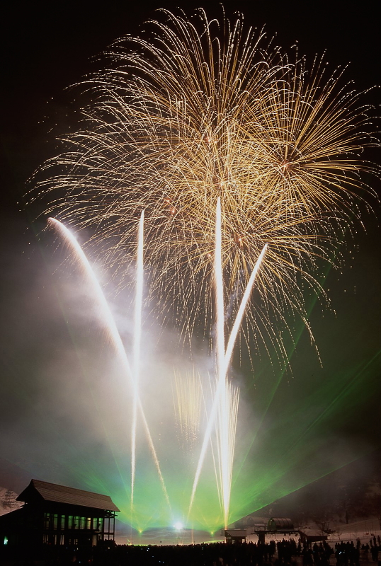 | 恩原高原スキー場で行われるレーザーショーと花火大会。 会場では地域の特産品が並ぶ屋台村をはじめ、ステージでは郷土芸能などのイベントが行われる。 雪と戯れる楽しいイベントや大小さまざまな雪像コンテストも開催される。 夕暮れになると雪灯篭に火が灯され、フィナーレに花火が打ち上がる県下最大の冬イベント。 〜goodtimeの追想〜 岡山と鳥取の県境にある極寒地、恩原高原。 ちょうど爆弾低気圧なるものが北日本を襲っていたので、 その影響で日本海側も雪に見舞われていた。 開催当日も朝から雪が降っており半ば出発を諦めかけていたのだが、 道路に雪が積もっていないことと日差しが射しているのが確認出来たのが出発の切っ掛けとなった。 万全の降雪対策を整えて13時00分出発。 いつもの国道313号線コースで北上するものの、夜間移動みたいにスムーズに進まず鏡野町まで3時間以上かかってしまった。 国道179号線、北に見える山は真っ白に染まっていたが、 奥津を通過して最後のトンネルを抜けると何と青空が見えてきた。 雪山の天気は変わりやすいと言うが、まさに天気は刻一刻と変わっていくので油断出来ない。 17時00分、恩原高原に到着。 会場に近い駐車場に行こうかと思ったが手前で警備員に指示されて遠い駐車場に止める。 シャトルバスで会場まで迎えてくれるらしいが帰りが混みそうで面倒ではあるが、 歩いて15分くらいの距離なので問題無いかな。 先ほどの青空は何だったのか?と思うくらい雪が降ってきた。 会場に入ると小さい雪象が出迎えてくれる。 今年も雪不足で心配されていたが開催前に雪が降ったおかげで無事作成出来たようだった。 去年話題だったおしりかじり虫の雪像は子供達に人気。 花火打上げまで1時間を切っているので早速現地調査。 と言っても今年もワキノ&トータルプロデュースなので調査するまでも無く、 例年通り最後部の電柱附近から撮影することにした。 18時00分、医龍のテーマでオープニングを飾るが、まさかこの曲を使ってくるとは思っていなかったので、 思わず鳥肌が立ってしまった。 そして打ち上げ直前まで降っていた雪がオープニングと共に止んでくれたのはまさに奇跡だった。 5000発を30分で消費させるのには小型煙火か特殊効果花火を使わなければ、 それこそ駐車料金を500円くらい徴収しなければ採算が取れない。 これだけのイベントを駐車場無料でシャトルバスも出してくれるのだから それなりにお金はかかっているに違いない。 逆に言えば駐車料金500円でもいいから花火の質を上げて欲しい気もする。 シャミセンロックや何かの映画のサウンドトラック、アメイジンググレイスなど、 アップテンポからバラードまで曲調に合わせてレーザー、照明、花火のコラボが展開。 エメラルド椰子や型物もあったが、花火の質は少し低下気味で千輪乱舞も無かったし何か物足りない。 やはりレーザーに相当お金がかかっているのだろうか。 オープニングに止んだ雪はフィナーレが近づくにつれて再び降り出し、 撮影は思ったほど手応えは無かったが、 雪のお蔭でレーザーは綺麗に見えたので雪の演出は良し悪し。 撮影終了後、足の小指の感覚が無くて急いで建物に入って暖める。 凍傷したか!?と心配したがやがて感覚を取り戻して一安心。 靴下2枚で大丈夫だと思っていたがどうも長靴がいけなかった。 来月の猫山スキー場まで対策を練り直しだ。 |