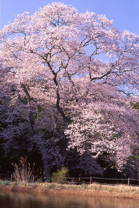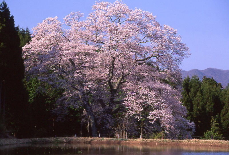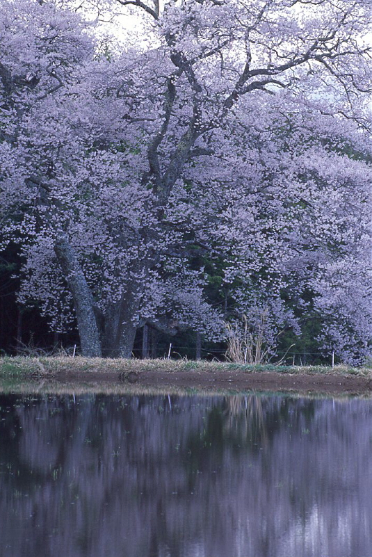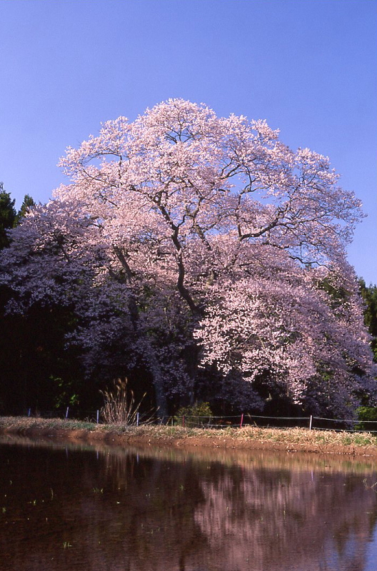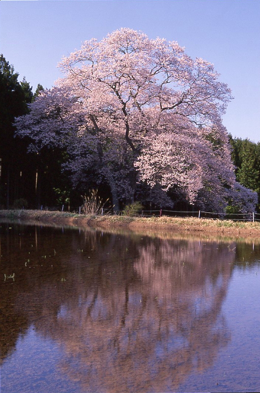 | エドヒガン(ウバヒガン、アズマヒガンとも呼ばれる)は、本州、四国、九州、朝鮮半島及び中国大陸に分布します。 花は葉が出る前に咲き、花柄や、がくに毛が多いのが特徴です。 広島県内では、総領町光にあるもの(胸高幹囲6.4m)、東城町小奴可の要害桜(胸高幹囲5.7m)に次ぐ第3位の巨木です。 胸高幹囲4.5mを越えるエドヒガンは全国的にも貴重といわれています。 樹齢:不明 根回り周囲:6m 目通り幹囲:5.06m 枝張り:東10m 西12m 南9m 北15m 樹高:約32m 〜goodtimeの追想〜 15時20分、森湯谷に到着。 風が少々強くて大きなエドヒガンがまるで生きているかのように揺れていた。 下から見下ろすと相変わらず存在感のある大きなエドヒガン桜。 ちなみに去年はまだ田んぼに水が張られてなかったが、 今年は満開に合わせて田んぼに水が張られていた。 過去何度も森湯谷には訪れているが、 今日ほど綺麗だと思ったことは無い。 それは午後の日差しを浴びていたということもあるが、 既に1/4くらい陰ってしまったので14時から15時頃が一番のシャッターチャンスかもしれない。 |