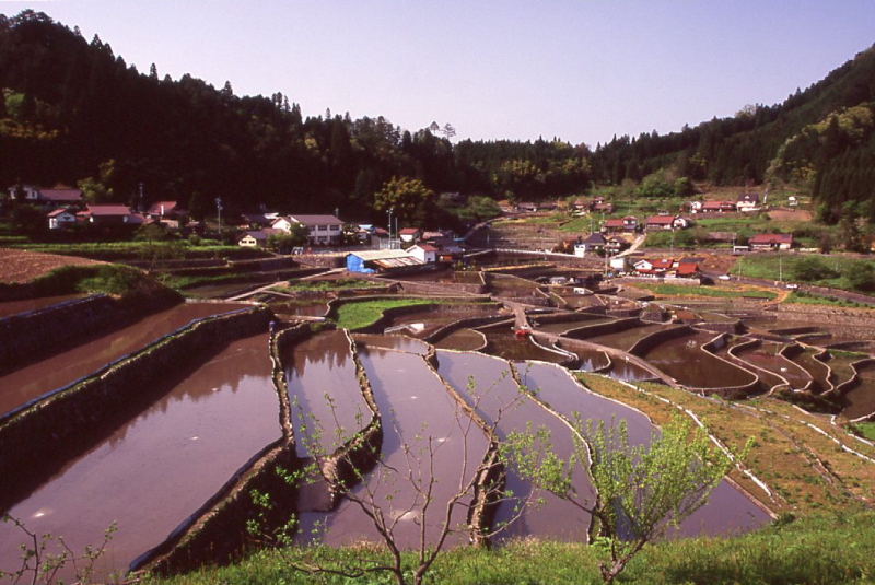 | 本地区は、東西方向に広がるすり鉢状の傾斜に棚田が広がり、県内でも美しい景観を誇る棚田集落であり、 地元住民自らが井仁棚田の景観、歴史文化等を地域資源として再評価し維持管理、保全に努めてきた。 また、地元実行委員会が中心となって、「棚田まつり」を主催し、50年前までに行ってきた方法で田植えを再現したり 都市の子供たちに田植えに挑戦してもらったりして都市との交流を図っている。 枚数/324枚 水源/河川 法面/石積 開発紀元/中世、近世 〜goodtimeの追想〜 芸北から岩国へ移動する途中に井仁の棚田に寄ってみた。 既に田植えを終えている所もあればこれから代掻きを始めるところもあり、 訪れるタイミングはゴールデンウィーク過ぎくらいが良さそう。 |