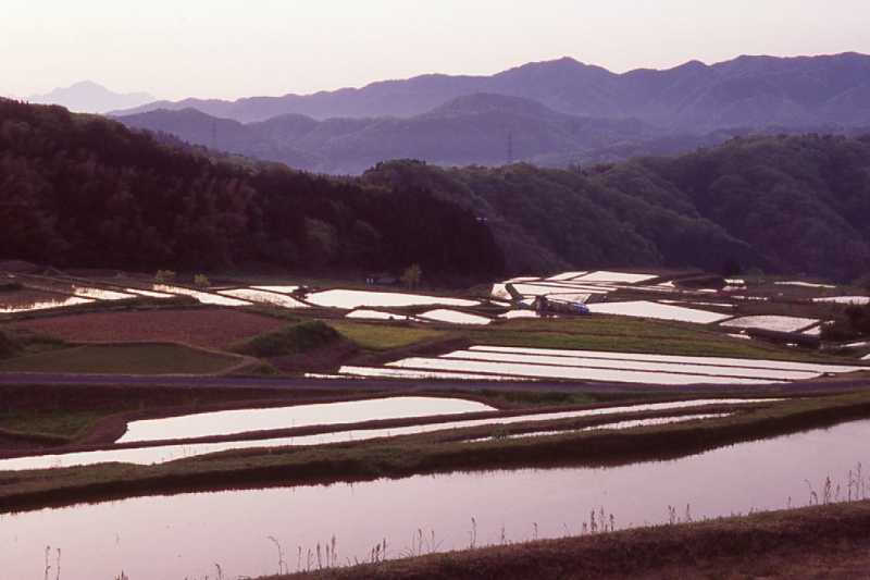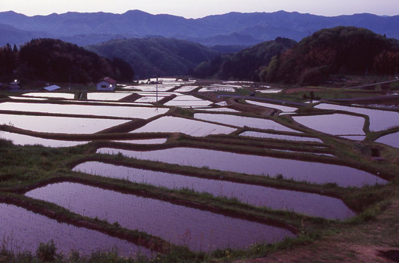 | 日本の棚田百選に認定されている山王寺の棚田は、雲南市大東町の北東部標高300mの山腹に位置し、 面積19ha、棚田数約200枚を有し、36戸の農家により守られてきました。 毎年棚田祭りを開催し、青空市場で新鮮な野菜等を直売するなどの取り組みも始め、 棚田オーナー制度にも積極的に普及促進を図っている。 また、島根県無形文化財指定の神楽である山王寺神楽が伝承されており、地域の暮らしの中に豊かな伝統文化が根付いている。 枚数/200枚 水源/天水・ため池 法面/土羽 開発紀元/近世(戦国〜江戸) 〜goodtimeの追想〜 山陰へ行く途中に山王寺の棚田に寄って あわよくば雲海と水が張られた棚田が撮れるかと期待したが 世の中そう甘くは行かないもので、 それでも空気は澄んでいたのか今日は遥か遠くに大山が見えた。 島根の田植えは時期が早いので5月上旬には殆ど田植えが終わっている。 |