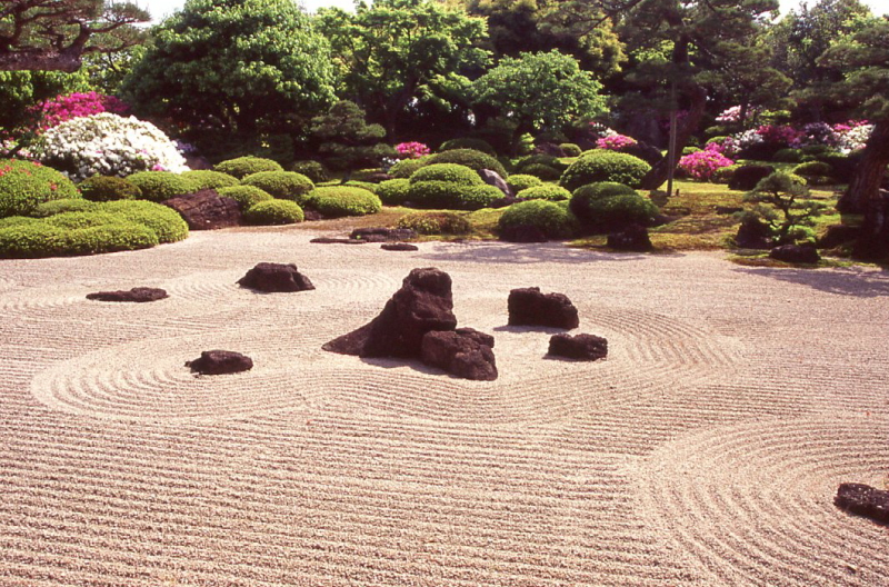 | 大根島の観光開発を目的として1975年に開園。 5月は牡丹や芍薬、秋は紅葉、冬はイルミネーションと 年中通して池泉回遊式庭園の美しさを楽しめる。 〜goodtimeの追想〜 島内にあるたくさんの牡丹園の中でも一際人気なのが由志園で、 朝早くから徐々に車の台数が増えていた。 最初は、牡丹しか無いのかと思っていたが、 池泉回遊式の庭園に思わず感動。 新緑シーズンと青空が演出して、ひょっとしたらこの春一番美しい時期に来たのかもしれない。 場所によってはツツジが咲いていたり、 新緑のモミジがキラキラ輝いていたり、 牡丹も多くの観光客を引き寄せていた。 |